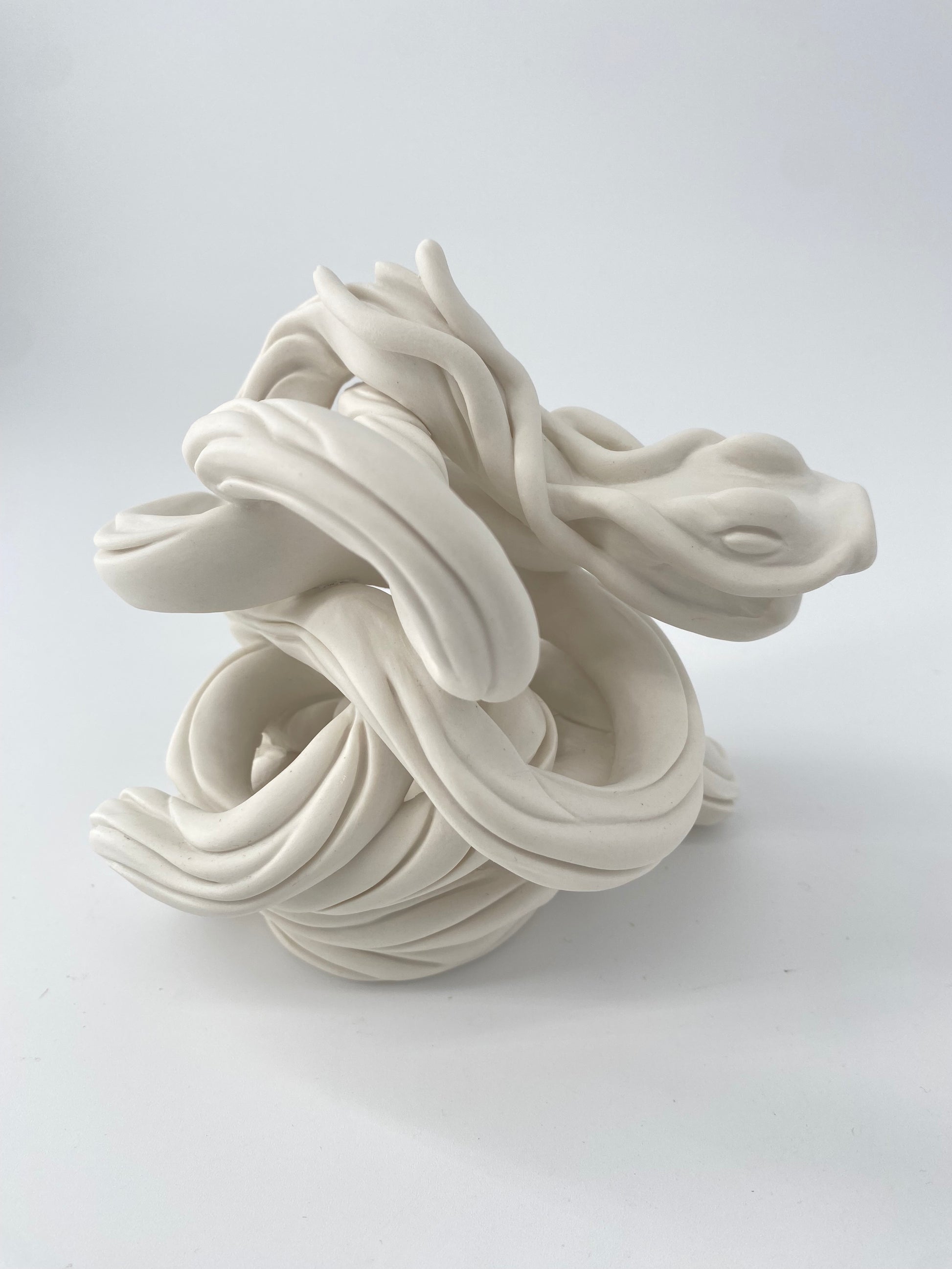 Ce serpent en porcelaine semble émerger d’un souffle invisible.